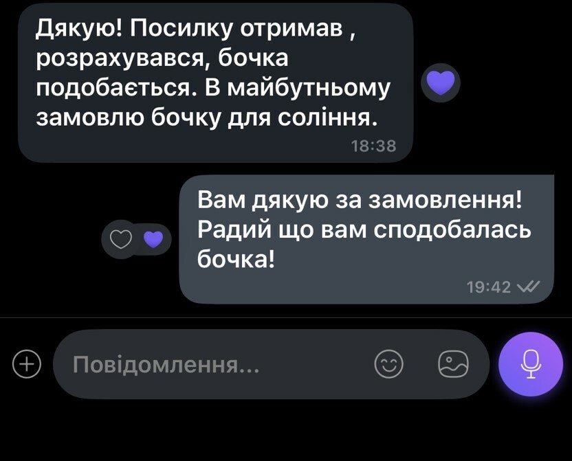 Наші бочки виготовлені згідно традиційної бондарної технологією з якісного дуба, без застосування клеїв, лаків та інших хімікатів.